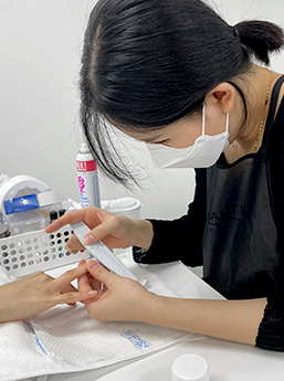 아무래도 처음 배우고 하는 것들이 어려웠고, 그 중에서도 네일 연장하는 것이 가장 어려웠습니다. 그럴 때마다 선생님께서 “원래 어려운 거다.”, “처음 하니까 당연한 거다.” 등등 이런 말씀을 많이 해 주셔서 그럴 때마다 더 좋은 자극을 받고 ‘할 수 있다 !’ 라는 마음을 가지고 하게 되면서 극복해 나가는 것 같습니다.
